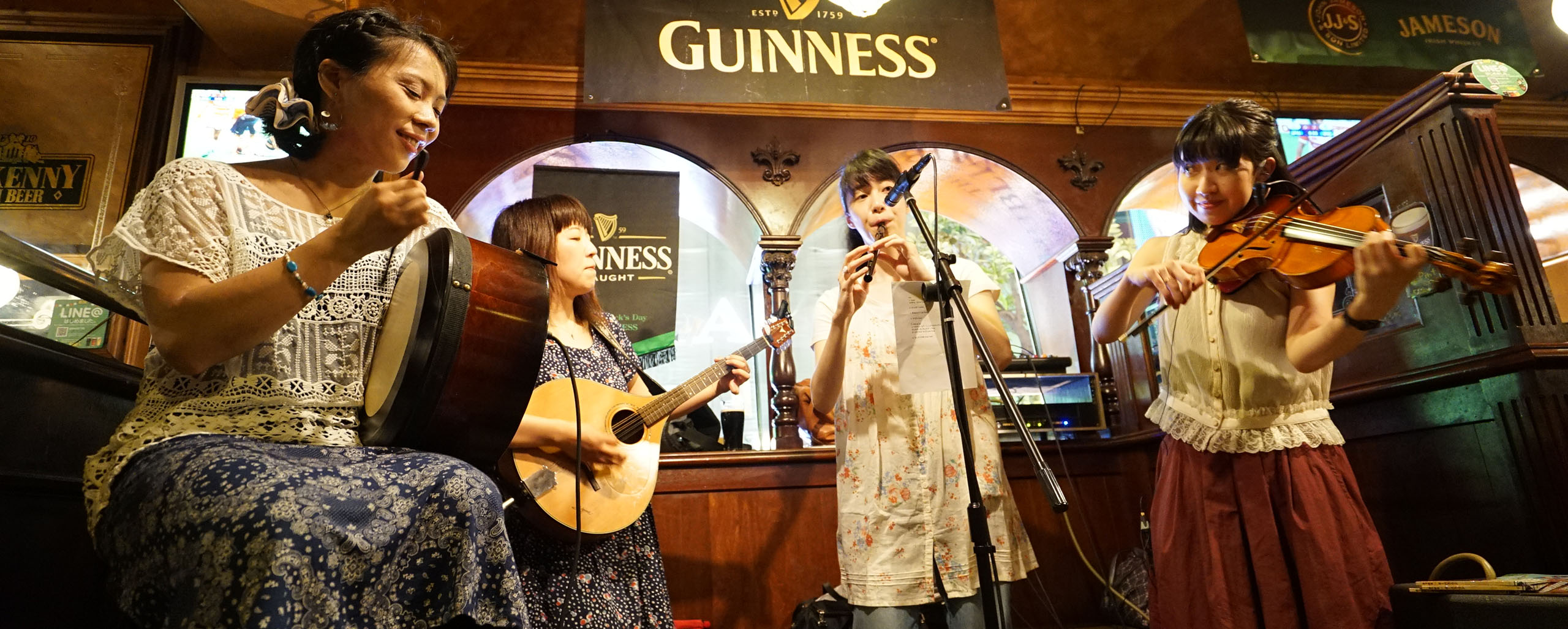 フィドル、ホイッスル、コンサーティーナ、ブズーキ、バウロンという本場さながらの楽器編成で紡ぎ出す4人のキャッチーなサウンドは、これまでのアイルランド音楽に新しい風を呼び込み、子どもからお年寄りまで幅広い世代の心を掴む。