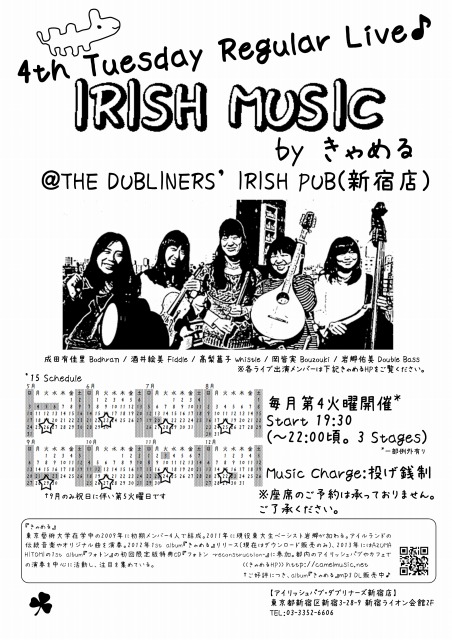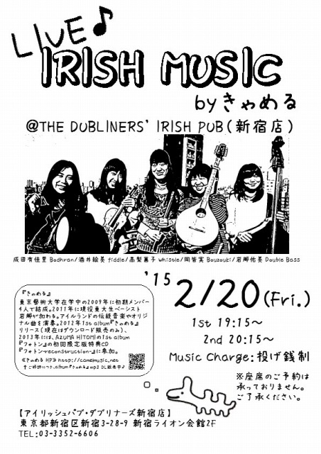 @‚«‚á‚ß‚éLIVE vol.19 @2015.2.20(‹à) 19:15`21:00 @@—THE DUBLINERS' IRISH PUBiVh“Xj @music charge “Š‚°‘K§ @–‚«‚á‚ß‚é– @ŽðˆäŠG”üiFiddlej @‚—œÒŽqiWhistlej @‰ªŠFŽÀiBouzoukij @¬“c—L‰À—¢iBodhranj @Šâ‹½—C”ü(DoubleBass) @yTHE DUBLINERS' IRISH PUBz @“Œ‹ž“sVh‹æVh3-28-9 Vhƒ‰ƒCƒIƒ“‰ïŠÙ2F @TELF03-3352-6606 @http://www.dubliners.jp/shinjuku/index.html @ @http://r.gnavi.co.jp/g209300/menu5/ @ª‚®‚é‚È‚Ñ@‚«‚á‚ß‚é‚ÌЉî‚àÚ‚Á‚Ä‚¢‚Ü‚· |