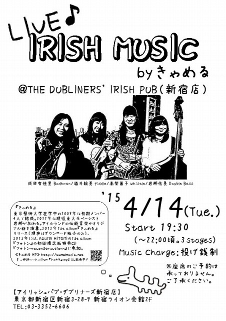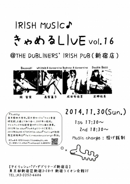 @‚«‚á‚ß‚éLIVE vol.15 @2014.11.30(“ú) 17:30 - 19:30 @@—THE DUBLINERS' IRISH PUBiVh“Xj @music charge “Š‚°‘K§ @–‚«‚á‚ß‚é– @‚—œÒŽqiWhistlej @‰ªŠFŽÀiBouzoukij @¬“c—L‰À—¢iBodhranj @Šâ‹½—C”ü(DoubleBass) @yTHE DUBLINERS' IRISH PUBz @“Œ‹ž“sVh‹æVh3-28-9 Vhƒ‰ƒCƒIƒ“‰ïŠÙ2F @TELF03-3352-6606 @http://www.dubliners.jp/shinjuku/index.html @http://r.gnavi.co.jp/g209300/menu5/ @@ª‚®‚é‚È‚Ñ ‚«‚á‚ß‚é‚ÌЉî‚àÚ‚Á‚Ä‚¢‚Ü‚· |