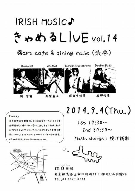 @‚«‚á‚ß‚éLIVE vol.14 @2014.9.4(–Ø) 1st 19:30` 2nd 20:30` @@—art cafe & dining museia’Jj @music charge “Š‚°‘K§ @–‚«‚á‚ß‚é– @‚—œÒŽqiWhistlej @‰ªŠFŽÀiBouzoukij @¬“c—L‰À—¢iBodhranj @Šâ‹½—C”ü(DoubleBass) @yart cafe & dining musez @§150-0042 “Œ‹ž“sa’J‹æ‰F“cì’¬11-1 –öŒõƒrƒ‹•ÊŠÙ2F @TELF03-6427-8174 @http://muse-tokyo.com/ |